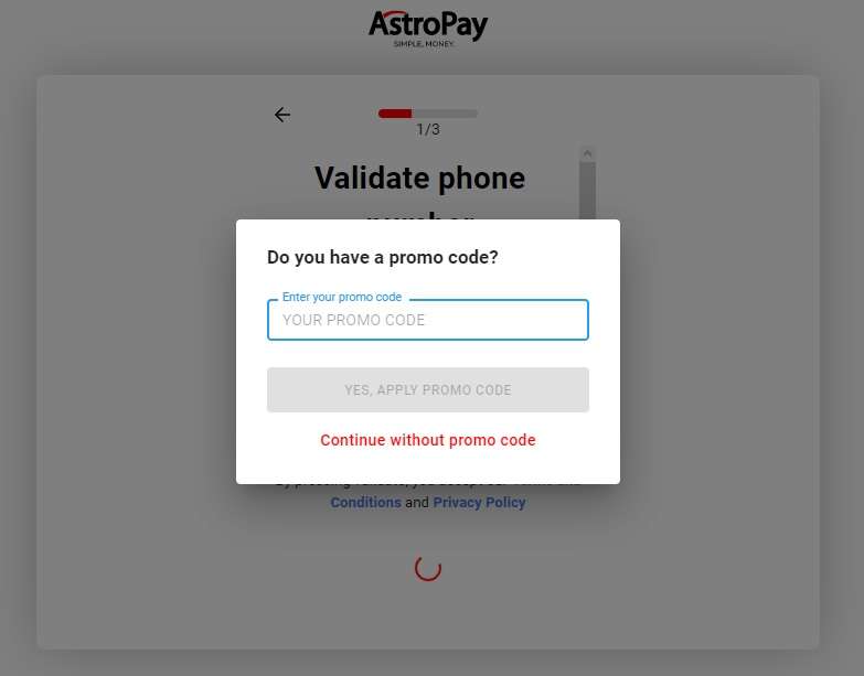 - 3. AstroPay will send a verification code to your given number, so provide an active number and paste the code to the next page.