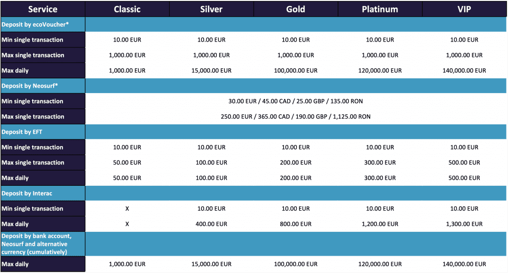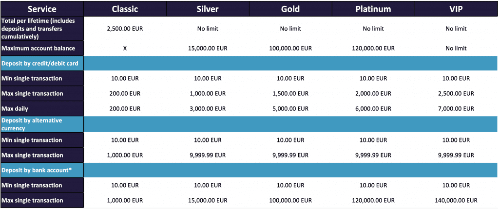 - To avoid this hassle, users can upgrade their status to Gold, VIP, or Platinum. This step will increase the maximum withdrawal amount to €1 500 for ATM and €11 000 on shops and e-commerce websites.