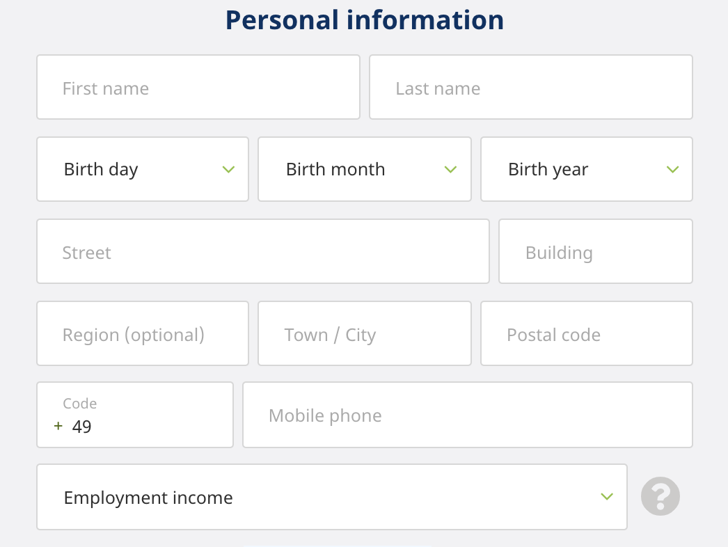 - deposit € 5 000 from a bank account or € 2 500 from a card;