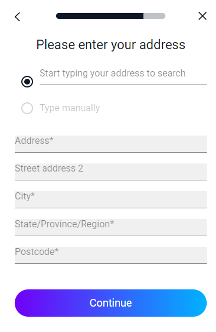 - 4. On the next screen, you have to enter your address. You can start typing in the search box to locate your address automatically or type the details manually.