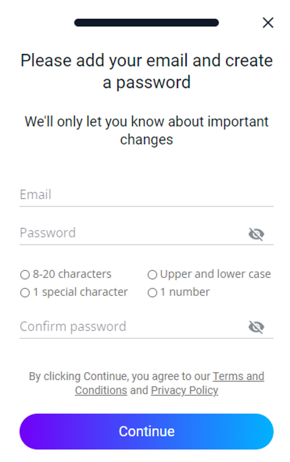 - 5. The final step consists of adding your email and setting a unique password for your account. You will get a link to verify your email through the mail. So, make sure to use a valid and accessible email address.