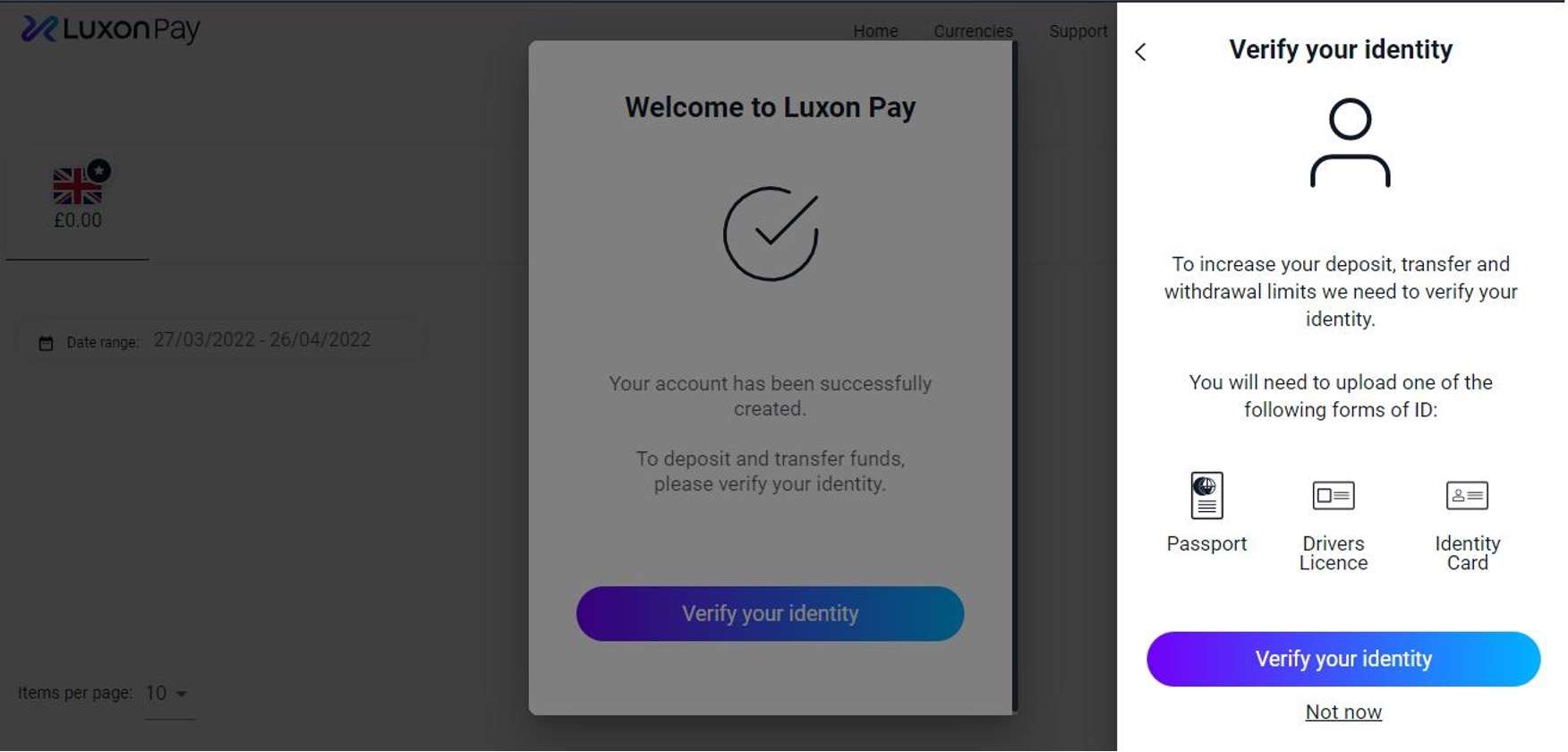 Verification is an important part after registering your Luxon Pay account. The verification will ensure that you have access to the highest deposit, transfer, and withdrawal limits and that your Luxon Pay account is not subject to any restrictions.