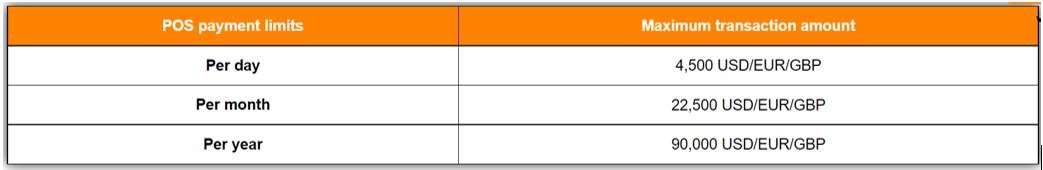 Your country’s currency determines this limit; for example, in the United Kingdom, a daily POS limit would be 4500 GBP, but it would be 4500 EUR in Germany.